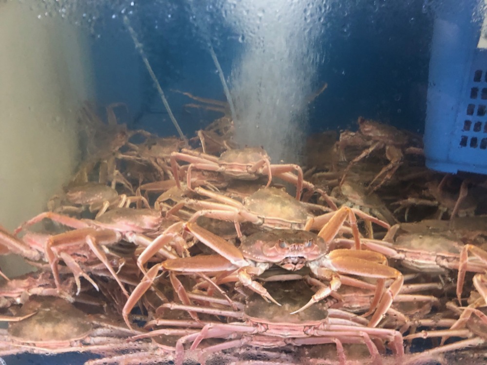 写真は、姉妹店「丹後ひもの屋」の水槽の中で元気に泳いでいる間人港産「せこがに」(^O^)/うじゃうじゃ