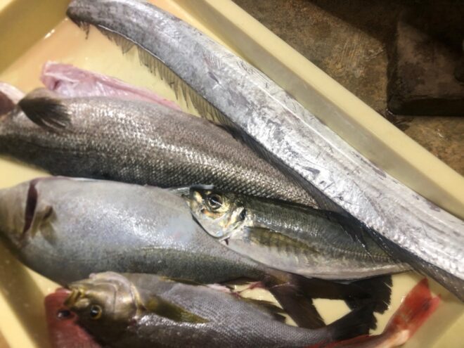写真の右側の・・・細長い魚は久美浜産「太刀魚」~っ別注で「お造り」にて提供~っ