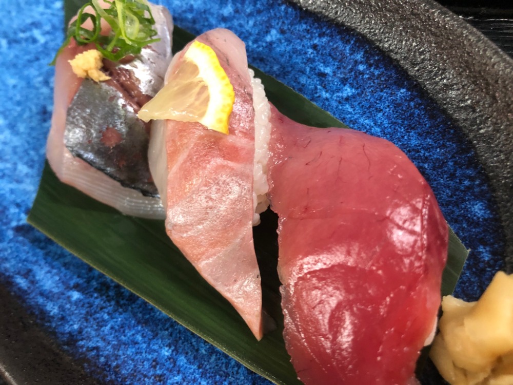 写真は日替わり別注品「朝獲れ地魚にぎり3種盛」(^O^)/