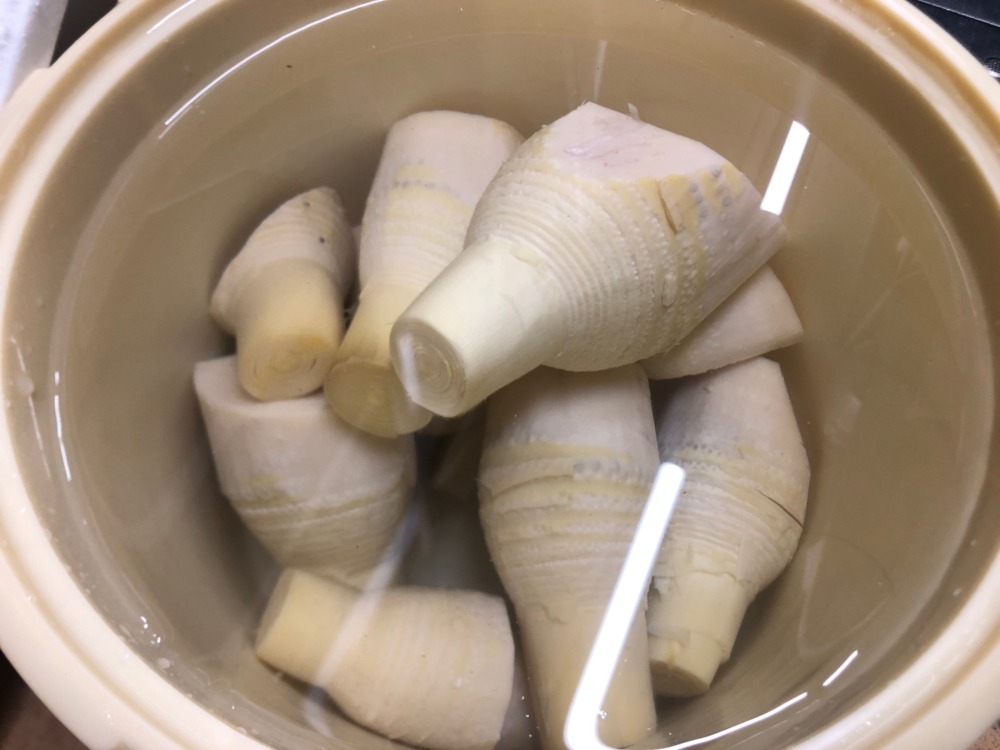 朝食のオカズの一品か、夜の「カニの天婦羅」と一緒に「タケノコの天婦羅」♪美味しいよん♪