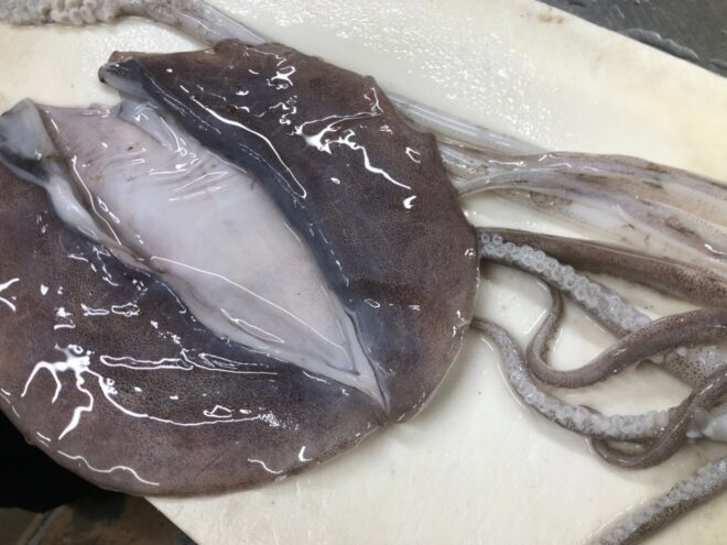 写真は久美浜産の朝獲れ「紋甲イカ」を解体している場面(^O^)/わおっ
