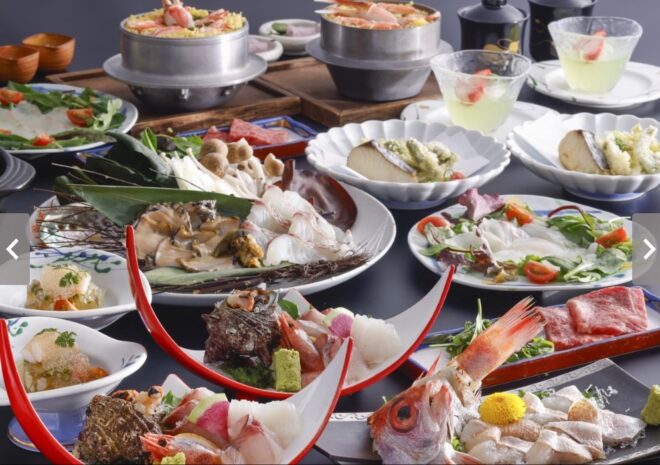 食材は。津居山産のどぐろ・活あわび・和牛ステーキ・カニ・・・