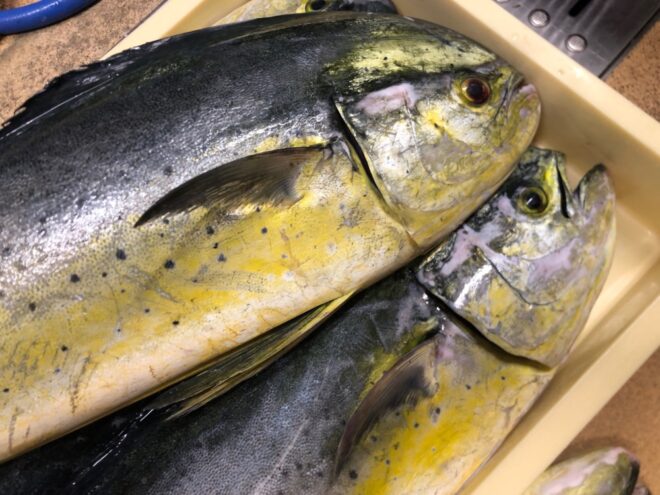 「マヒマヒ」「ドルフィンフィッシュ」と呼ばれ、世界中の暖かい海に分布する大型の肉食魚。